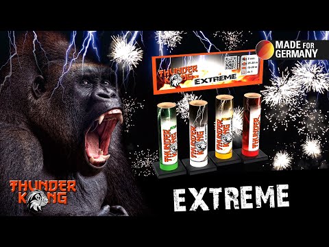 Wenn dieser König brüllt, erzittert die Luft. „Thunder Kong Extreme“ stampft mit roten und grünen Schweifen in den Himmel und explodiert in vollen Goldbuketten, titangoldenen Palmenexplosionen und glühenden Glitzerregen.Groß, laut und unverkennbar, extreme Kraft.