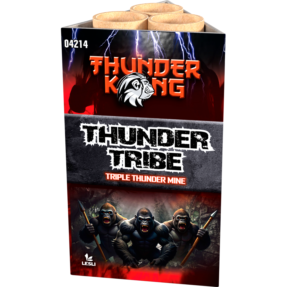 Drei Schüsse, eine explosive Familie! Blaue Sterne, roter Glitzer und Meteorschauer rasen gemeinsam hinauf. Lasst mit „Thunder Tribe“ die Luft mit Kraft und Spektakel füllen!