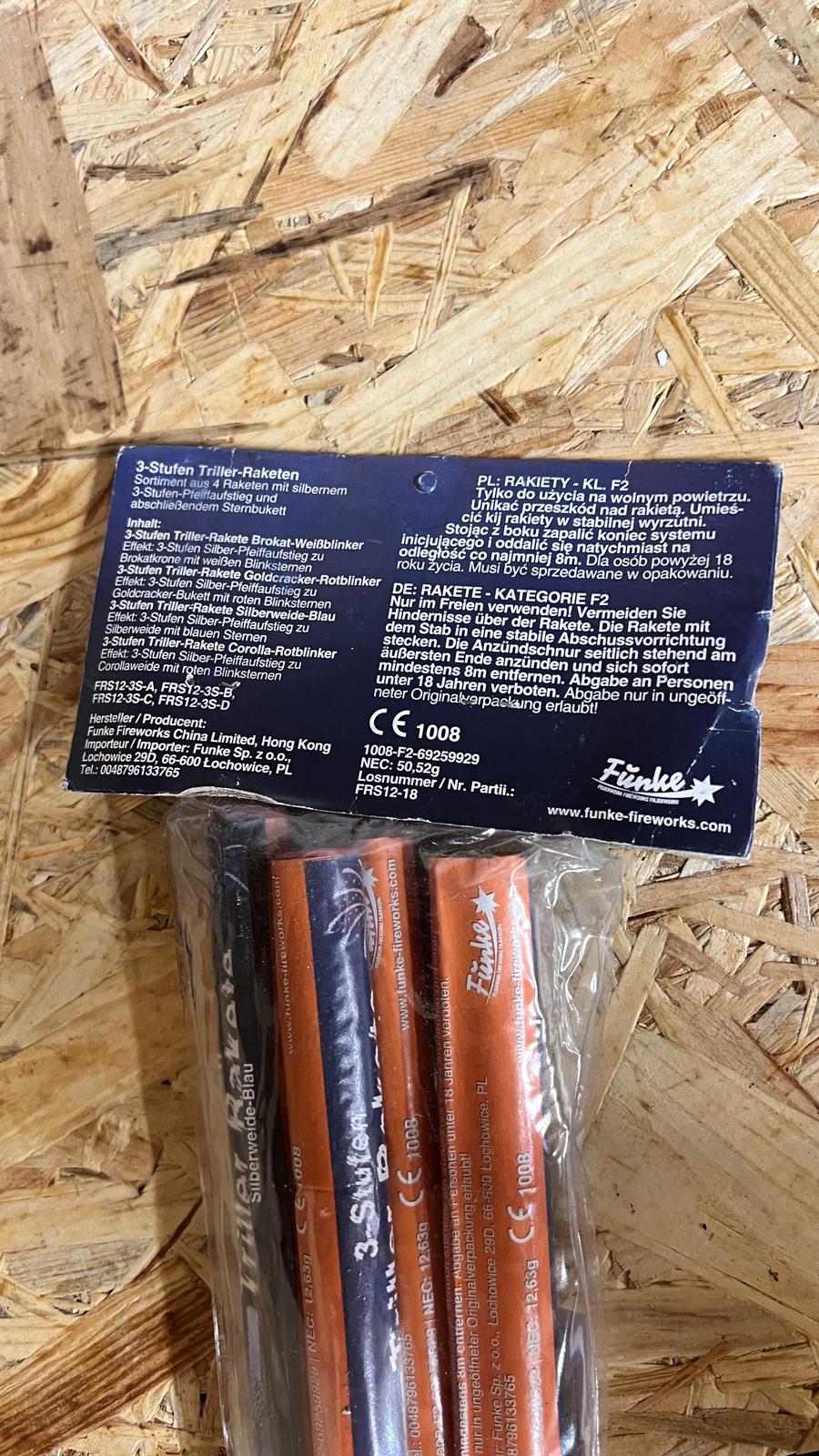 3-Stufen Triller-Rakete Brokat-Weißblinker: 3-Stufen Silber-Pfeiffaufstieg zu Brokatkrone mit weißen Blinksternen 3-Stufen Triller-Rakete Goldcracker-Rotblinker: 3-Stufen Silber-Pfeiffaufstieg zu Goldcracker-Bukett mit roten Blinksternen 3-Stufen Triller-Rakete Silberweide-Blau: 3-Stufen Silber-Pfeiffaufstieg zu Silberweide mit blauen Sternen 3-Stufen Triller-Rakete Corolla-Rotblinker: 3-Stufen Silber-Pfeiffaufstieg zu Corollaweide mit roten Blinksternen“